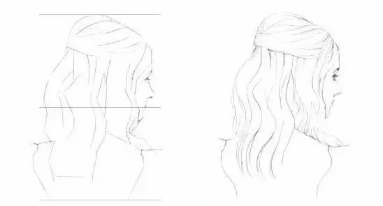 2、画头发需要特别注意线条的运用,对于线条有两个要求:一是要保持线条的流畅,一笔一笔地画出头发,避免来回画,出现线尾倒勾的现象;二是要长短线结合画,这样有利于保留自然的高光。
