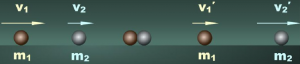 例题:光滑水平面上有质量分别为m1、m2的小球,其中m1有水平向在右的速度,m2静止,求碰撞以后两者的速度。(碰撞过程为弹性碰撞)