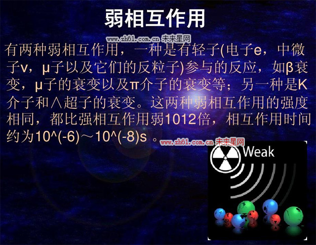 唯一能令宇称不守恒的相互作用。因此它也是唯一违反CP对称的相互作用。
