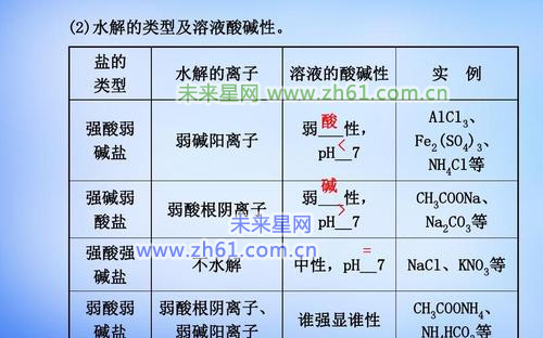 (二.根据盐类的不同,可分为:强酸强碱盐.不水解);强酸弱碱盐.强奸弱酸盐.弱酸弱碱盐